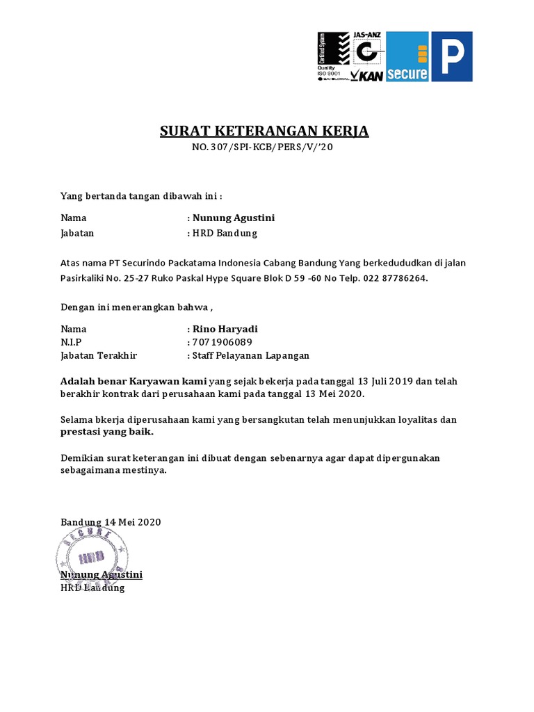 berakhir kontrak dari perusahaan kami pada tanggal 13 Mei 2020.