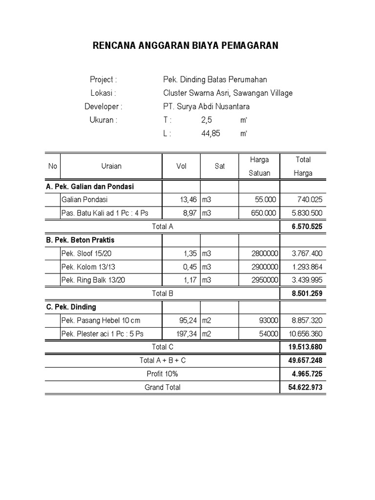 RENCANA ANGGARAN BIAYA PEMAGARAN