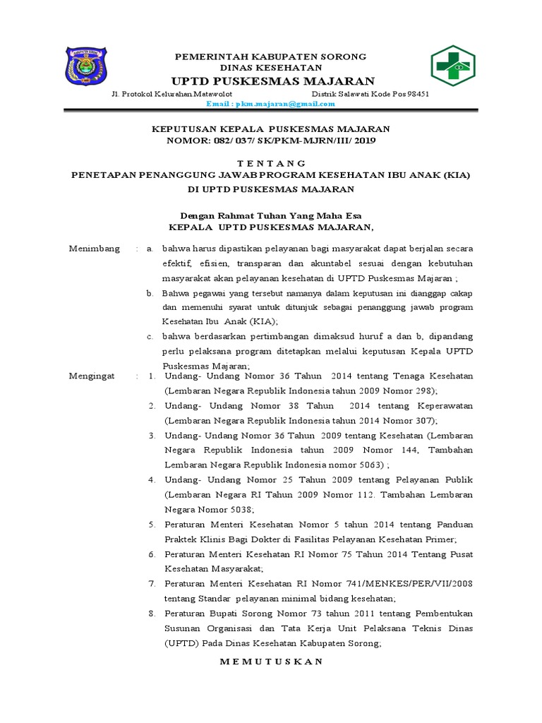 PENETAPAN PENANGGUNG JAWAB PROGRAM KESEHATAN IBU ANAK (KIA)