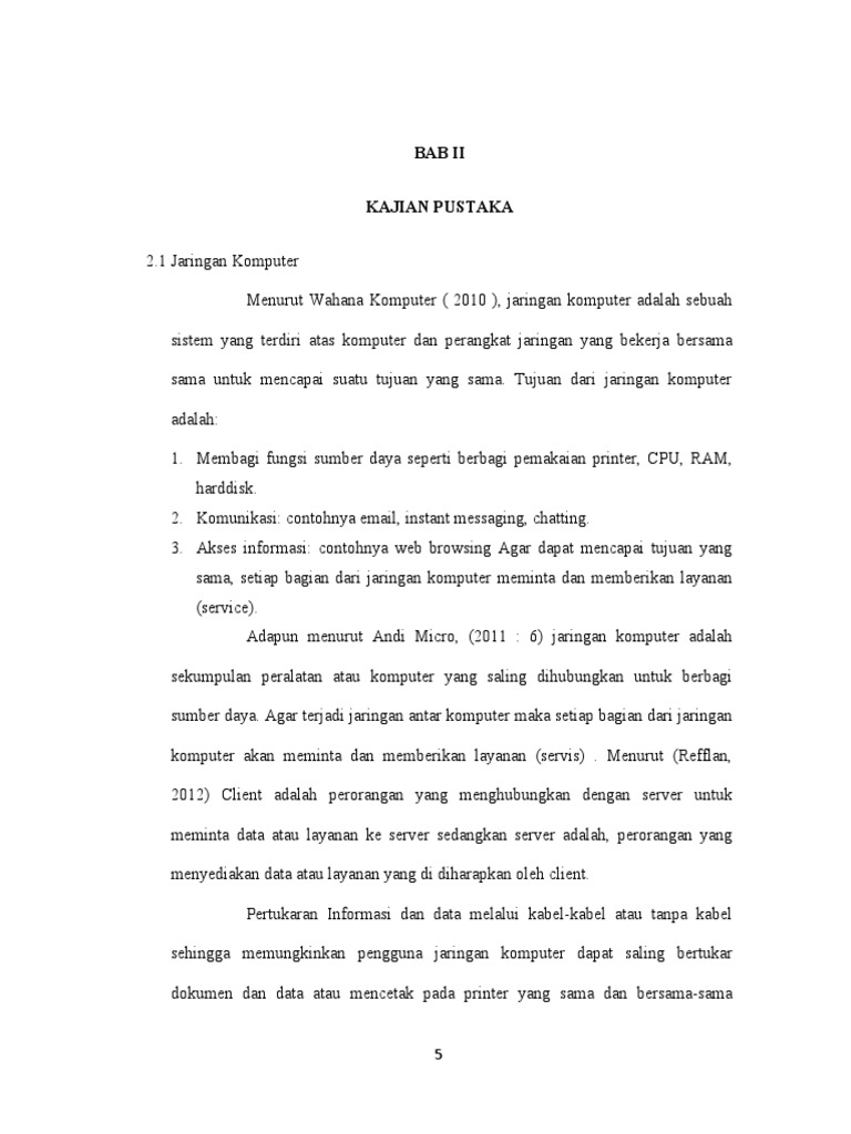 Menurut Wahana Komputer ( 2010 ), jaringan komputer adalah sebuah