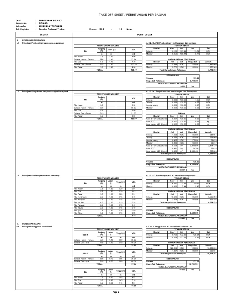 Batu belah 38.0 m³ 228,100 8,667,800 Mandor 42 HOK 130,000 5,460,000