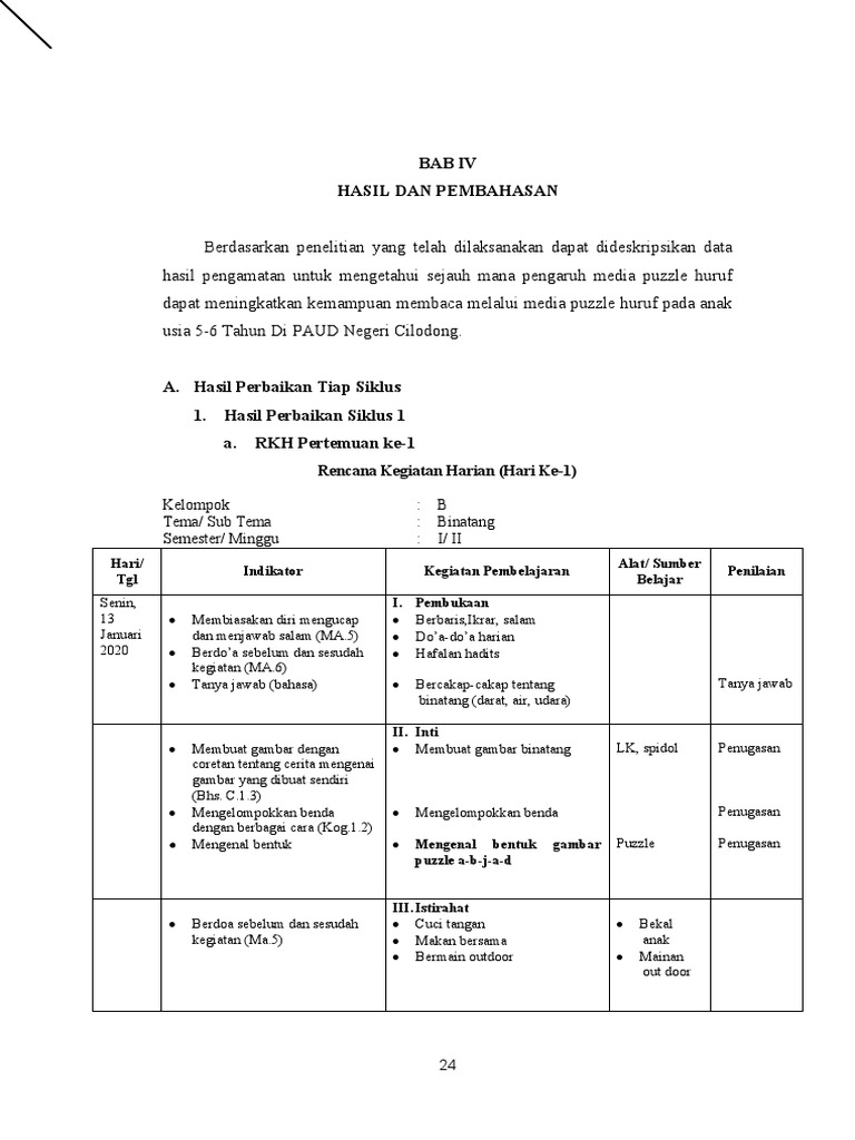 kemampuan membaca melalui puzzle huruf pada anak kelompok B di PAUD