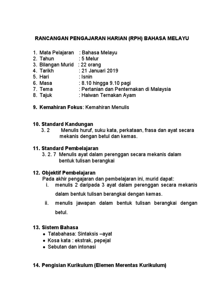 RANCANGAN PENGAJARAN HARIAN (RPH) BAHASA MELAYU