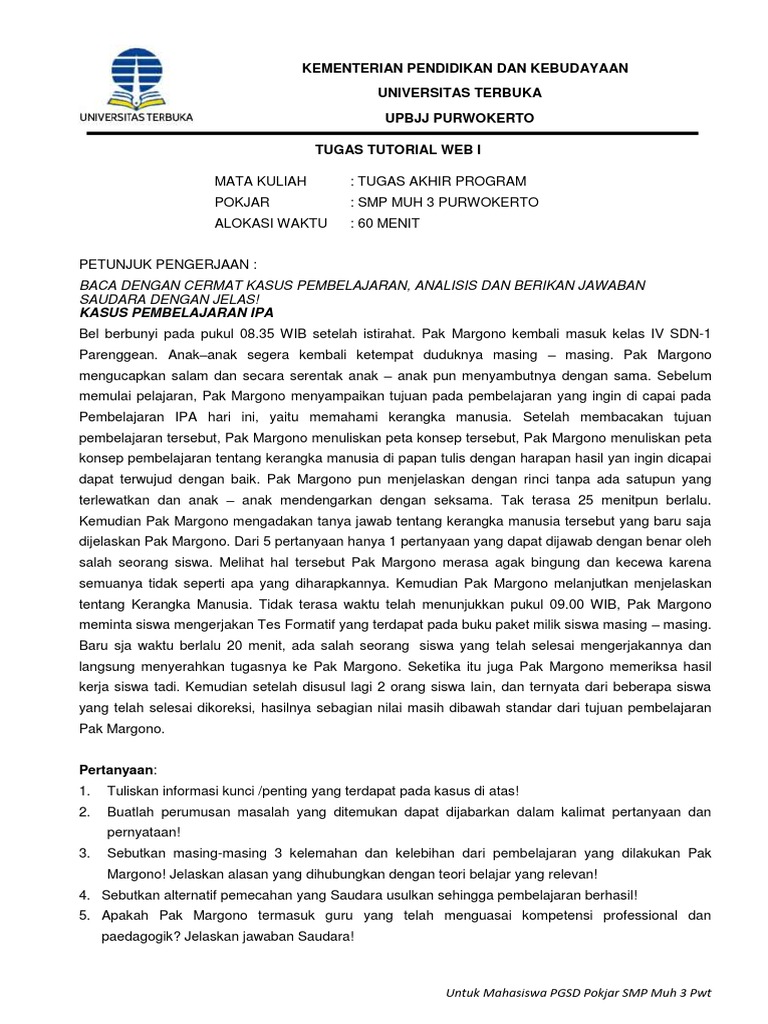 BACA DENGAN CERMAT KASUS PEMBELAJARAN, ANALISIS DAN BERIKAN JAWABAN