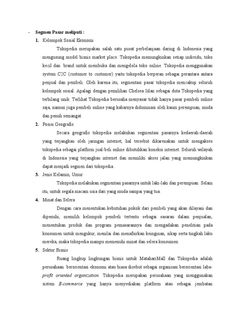 penjual dan pembeli. Oleh karena itu, segmentasi pasar tokopedia mencakup seluruh