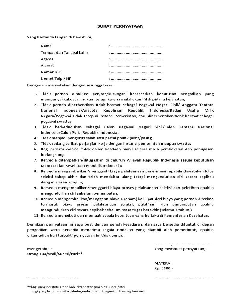 11. Bersedia mengikuti dan mentaati segala ketentuan yang berlaku di Kementerian Kesehatan.