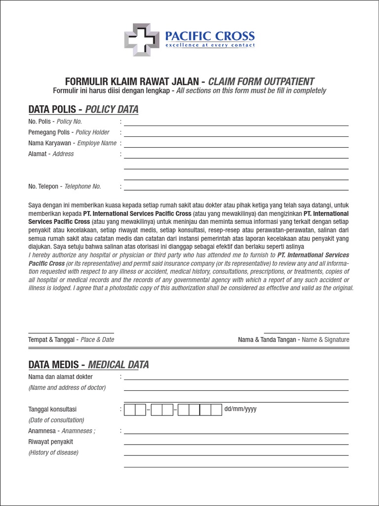 FORMULIR KLAIM RAWAT JALAN - CLAIM FORM OUTPATIENT