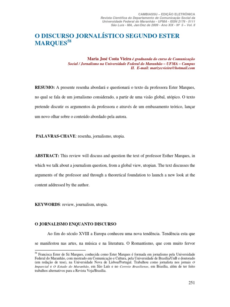 O DISCURSO JORNALÍSTICO SEGUNDO ESTER MARQUES 58