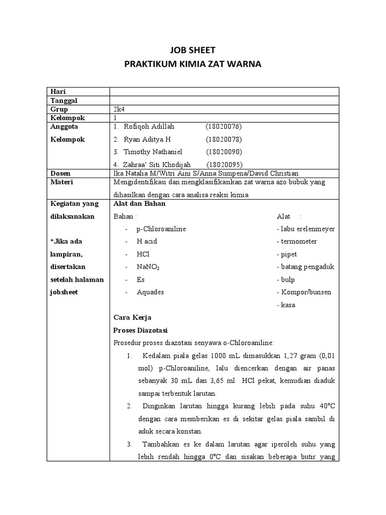 Output Resep Pembuatan Zat Warna