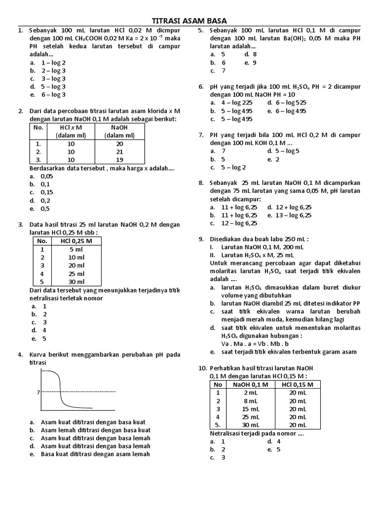2. Dari data percobaan titrasi larutan asam klorida x M b. 5 – log 495 e. 6 – log 495