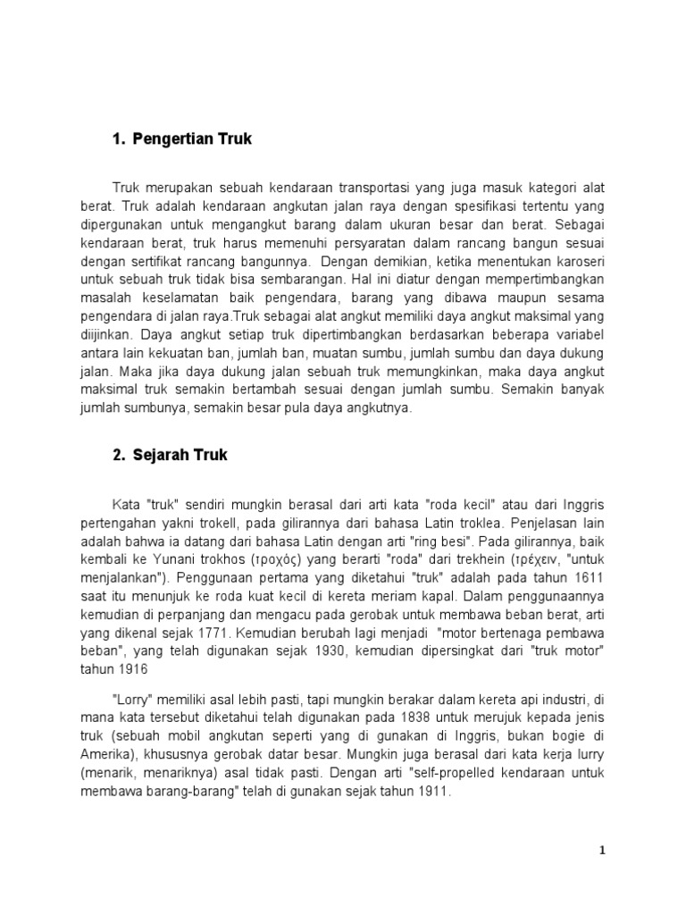 berat. Truk adalah kendaraan angkutan jalan raya dengan spesifikasi tertentu yang