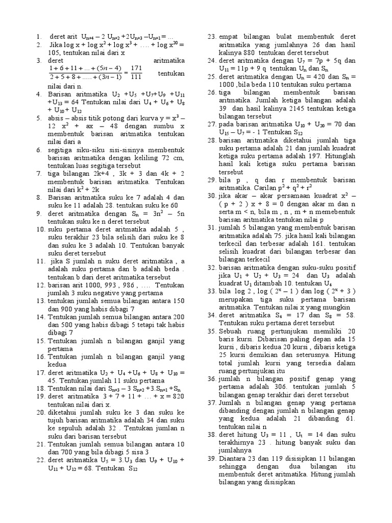 adalah suku pertama dan b adalah beda . 32. barisan aritmatika dengan suku-suku positif