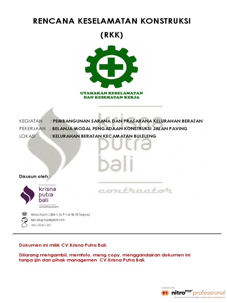 Demikian Rencana Keselamatan Konstruksi ini kami ajukan. Untuk keperluan Lelang Pada