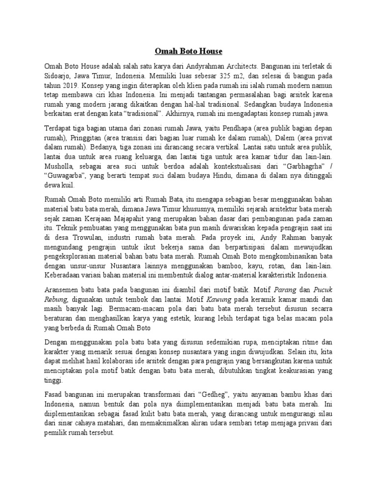 - Pintos, P. (2019). Citation : Omah Boto House. Archdaily. Retrieved from