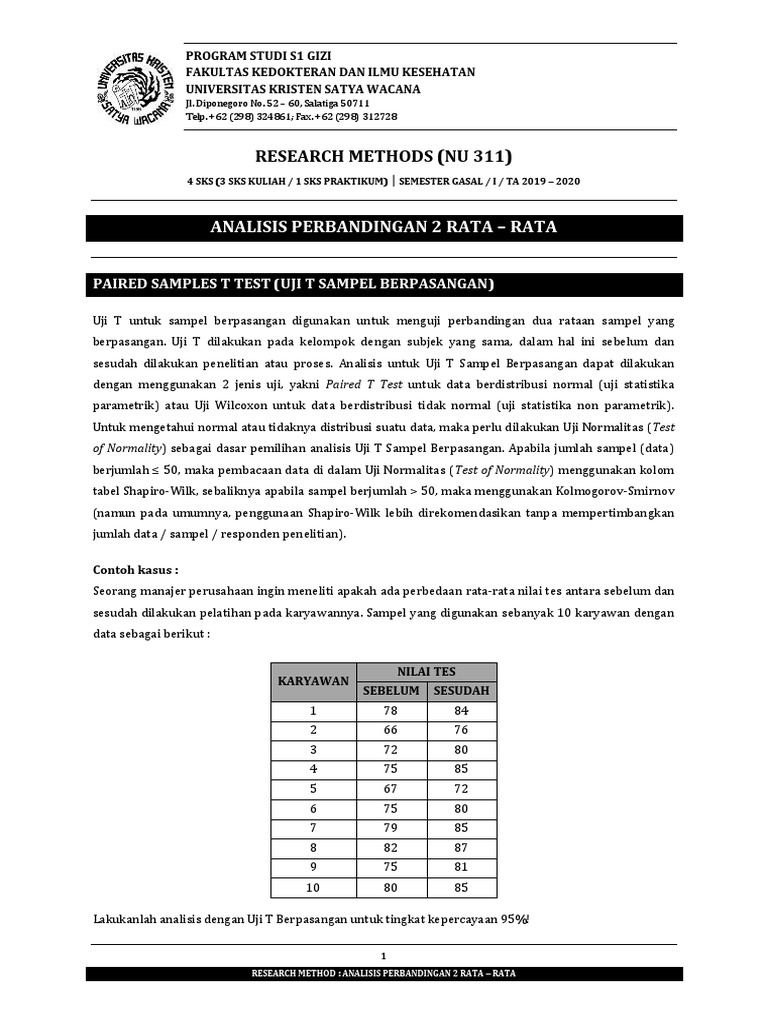 suatu data atau kajian tertentu. Sama halnya dengan Uji T Sampel Berpasangan, sebelum melangkah
