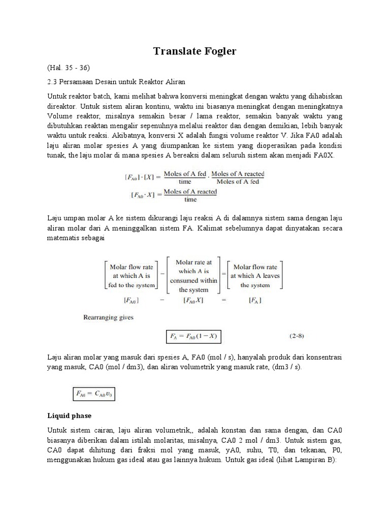 2.3 Persamaan Desain untuk Reaktor Aliran