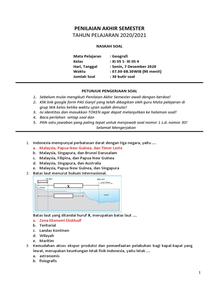 1. Indonesia mempunyai perbatasan darat dengan tiga negara, yaitu ....