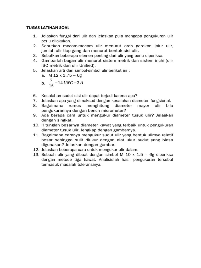 1. Jelaskan fungsi dari ulir dan jelaskan pula mengapa pengukuran ulir