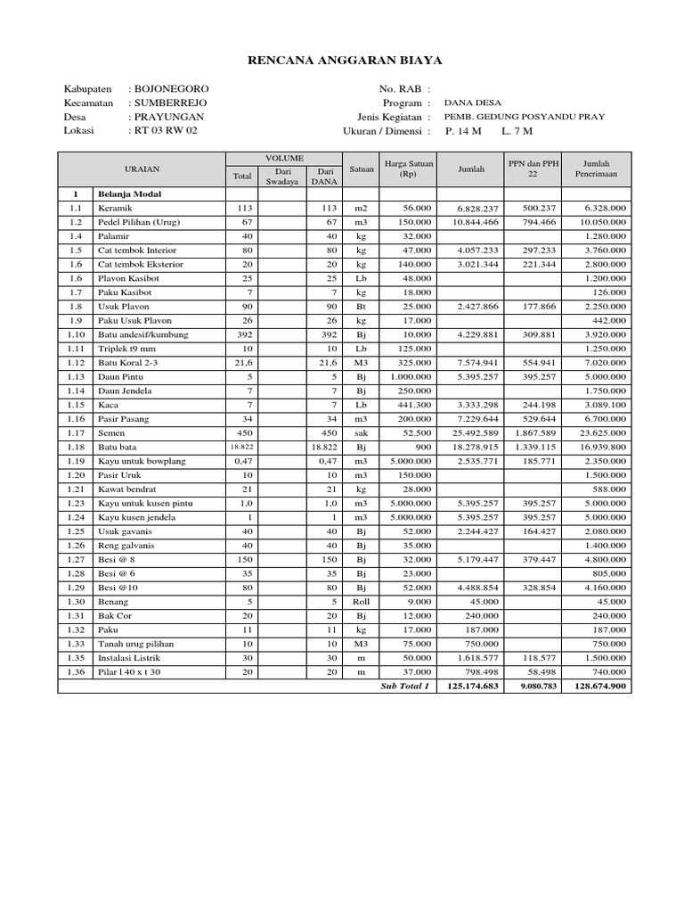 Desa : PRAYUNGAN Jenis Kegiatan : PEMB. GEDUNG POSYANDU PRAY