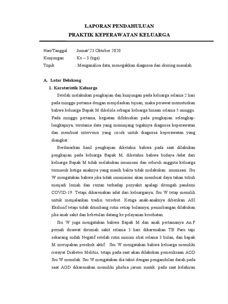 Setelah melakukan pengkajian dan kunjungan pada keluarga selama 2 hari