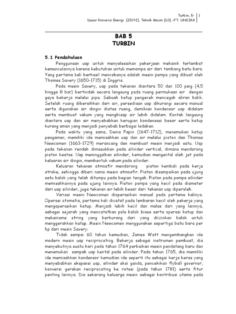 Dasar Konversi Energi (20192), Teknik Mesin (D3) -FT, UNSIKA