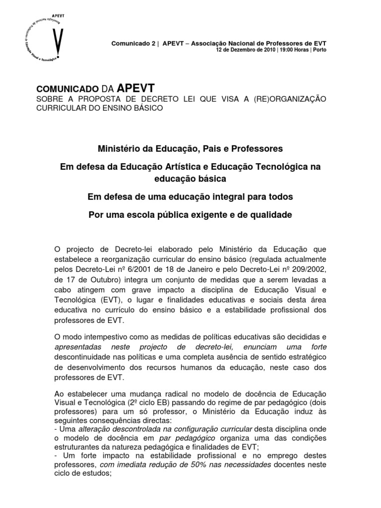Comunicado 2 | APEVT – Associação Nacional de Professores de EVT