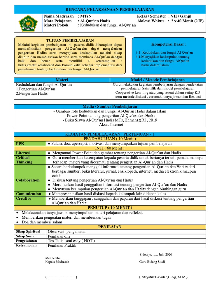Kedudukan dan fungsi Al-Qur’an Guru melakukan kegiatan pembelajaran dengan pendekatan