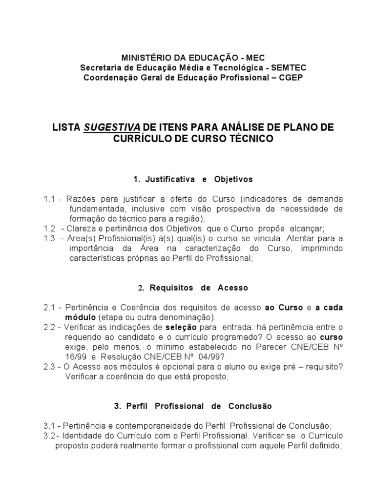 proposta curricular caracterizada e com as exigências legais fixadas. Em