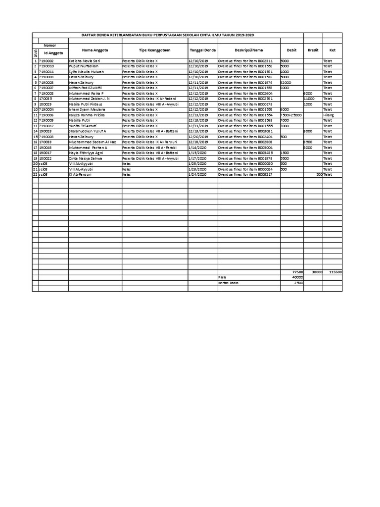 20 sci03 VIII AL-Ayyubi Kelas 1/23/2020 Overdue fines for item B000020 500 Telat