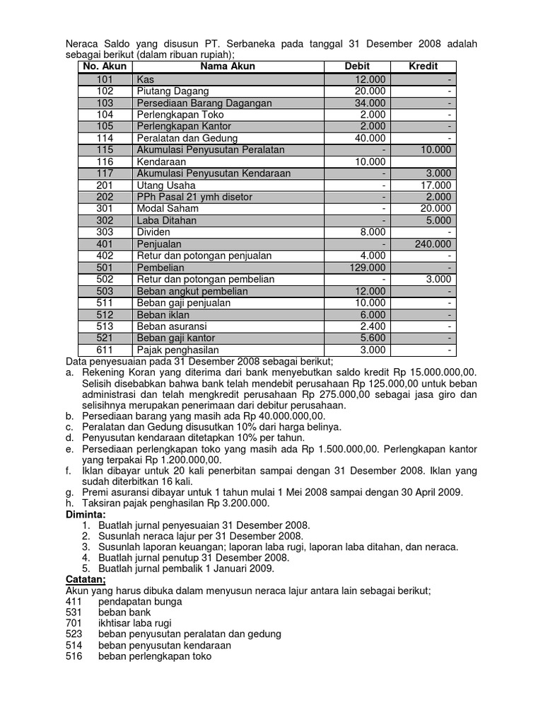 1. Buatlah jurnal penyesuaian 31 Desember 2008.