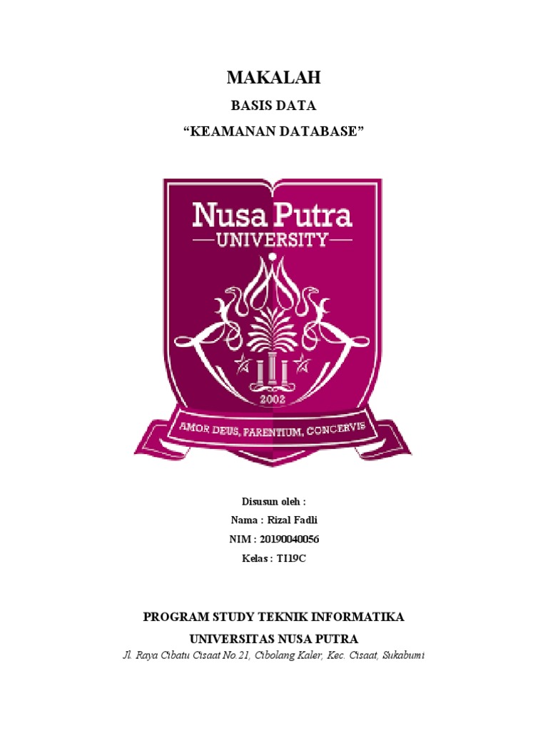 Kesimpulan yang dapat penulis peroleh adalah bahwa Teknik Pengamanan Basis Data dengan