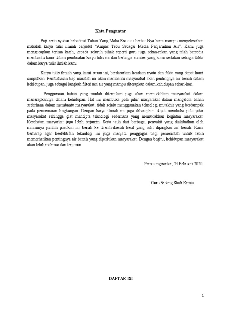 makalah karya tulis ilmiah berjudul “Ampas Tebu Sebagai Media Penjernihan Air”. Kami juga
