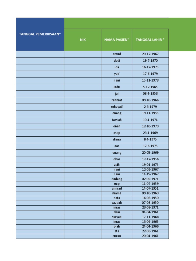 NIK NAMA PASIEN* TANGGAL LAHIR *
