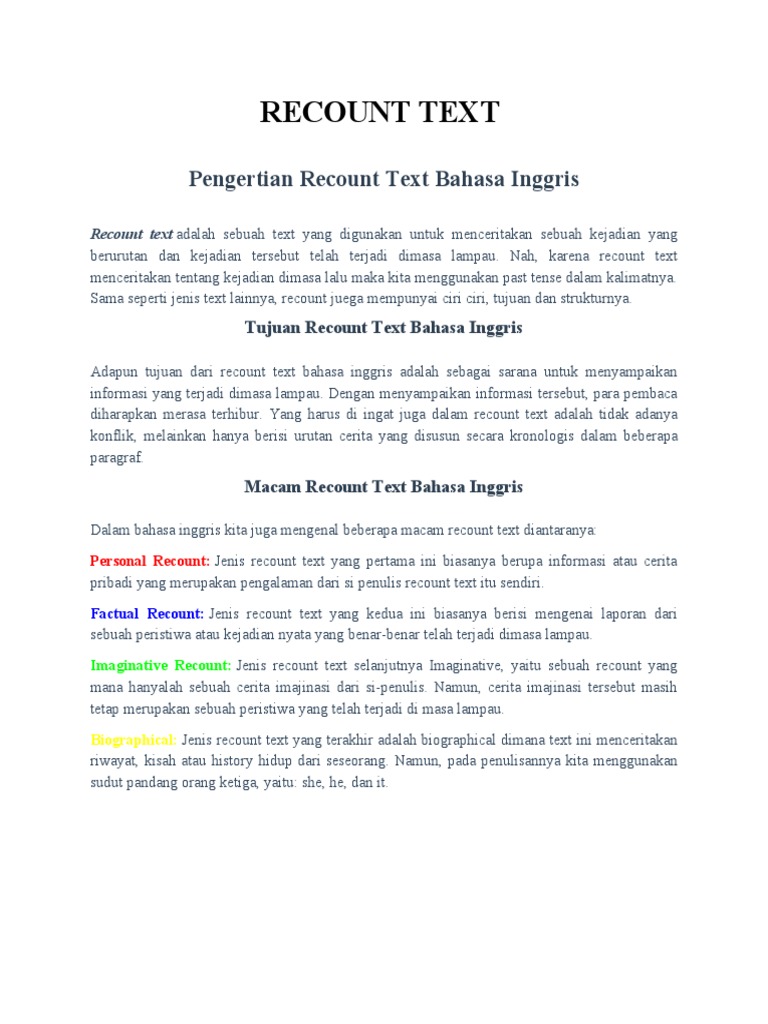 Recount text adalah sebuah text yang digunakan untuk menceritakan sebuah kejadian yang