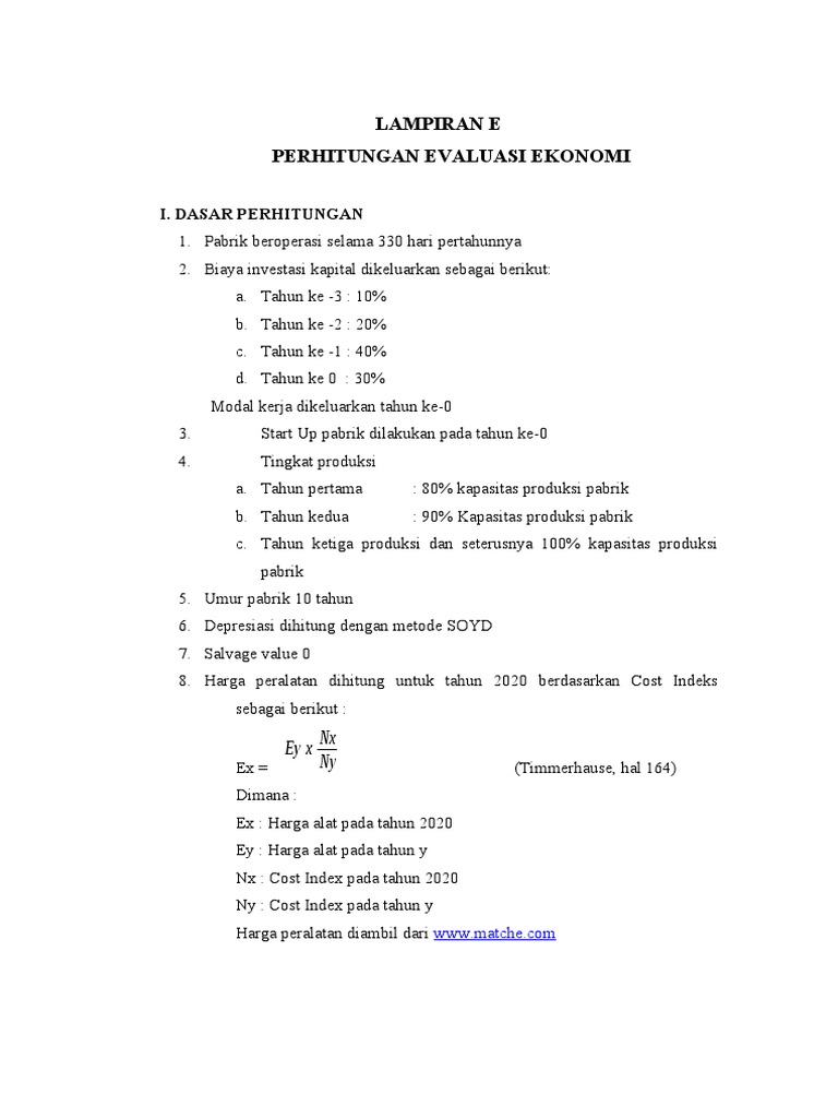 8. Harga peralatan dihitung untuk tahun 2020 berdasarkan Cost Indeks