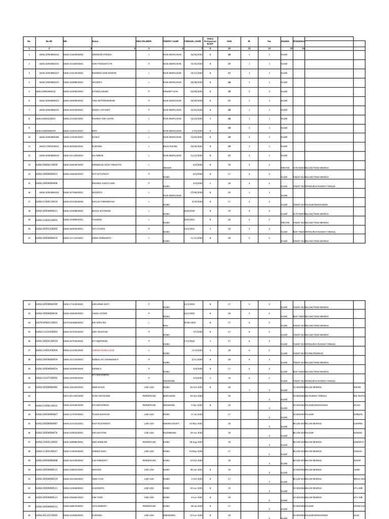 No No KK NIK Nama JENIS KELAMIN TEMPAT LAHIR TANGGAL LAHIR Perkawinan USIA Rt Rw AGAMA PENDIDIKAN