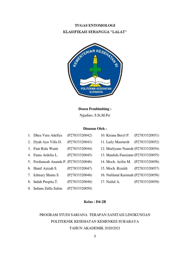 1. Dhea Vara Adellya (P27833320042) 10. Kirana Beryl P. (P27833320051)