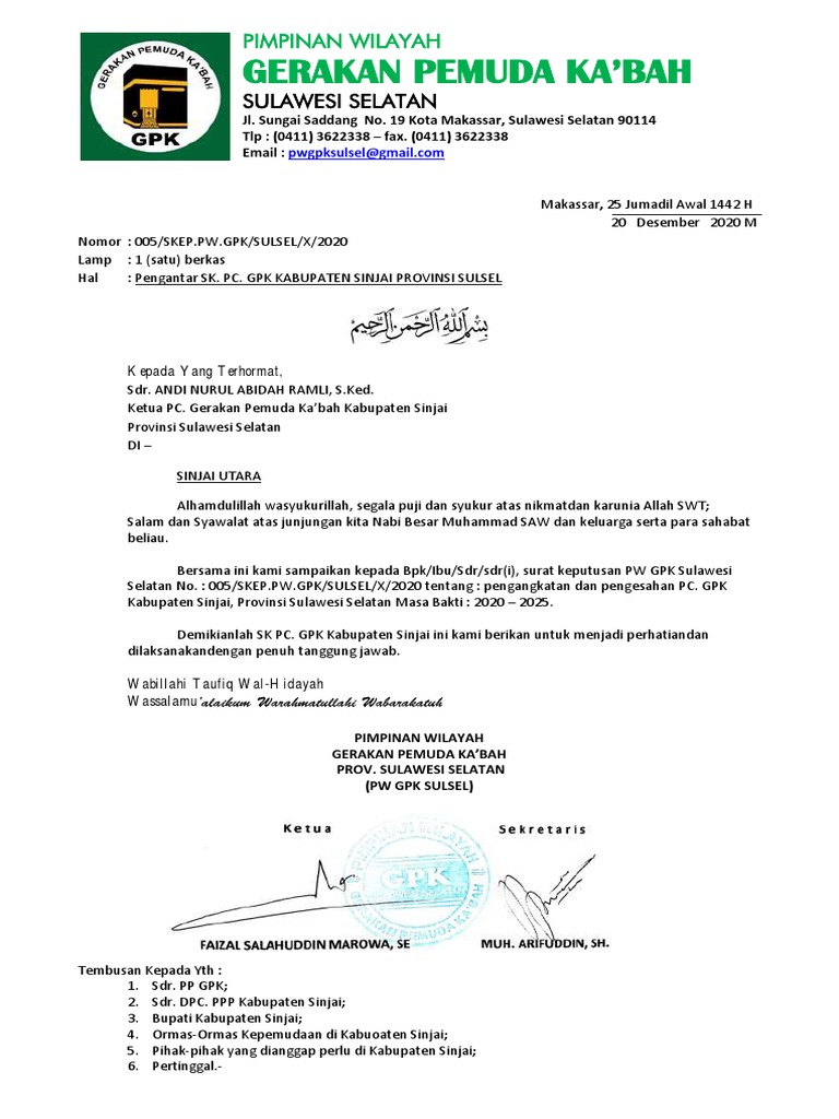 Demikianlah SK PC. GPK Kabupaten Sinjai ini kami berikan untuk menjadi perhatiandan