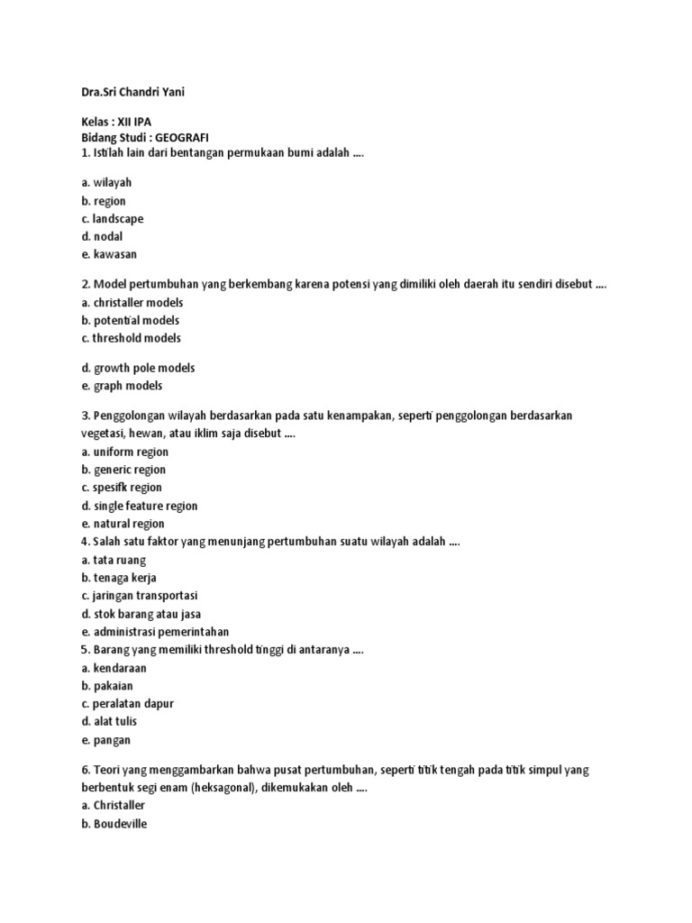13. Potensi dari suatu wilayah untuk dapat tumbuh dan berkembang baik ditinjau secara fisik,sosial,