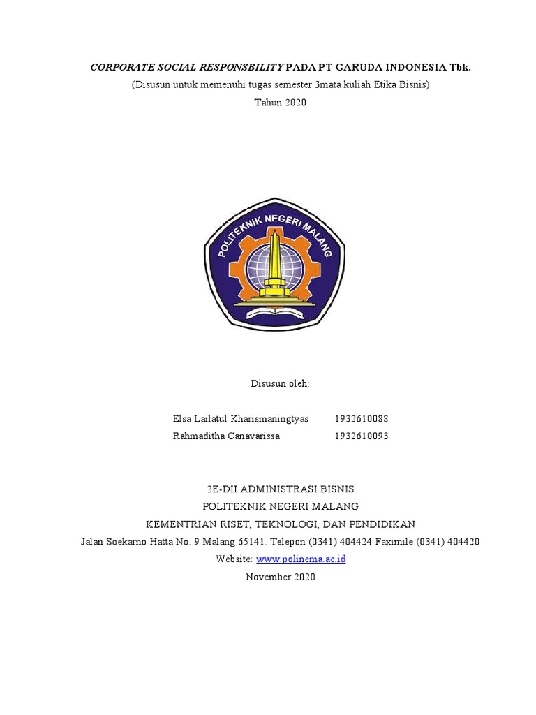 Penulisan laporan ini merupakan salah satu tugas mata kuliah Etika Bisnis di Politeknik