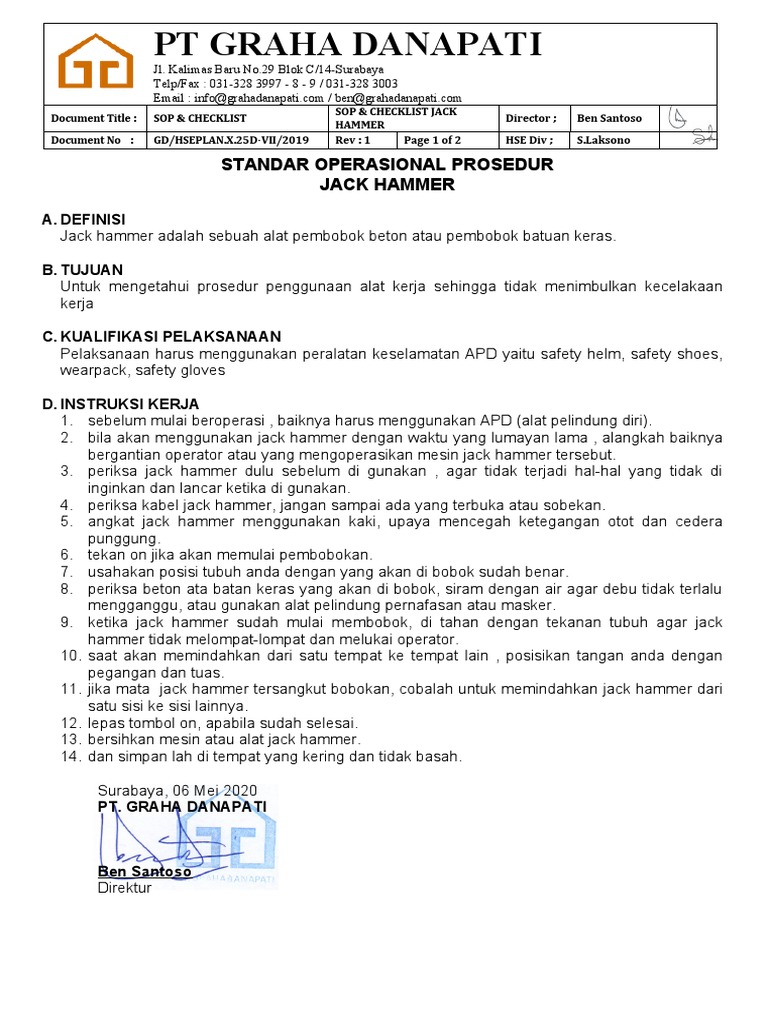 Document No : GD/HSEPLAN.X.25D-VII/2019 Rev : 1 Page 1 of 2 HSE Div ; S.Laksono