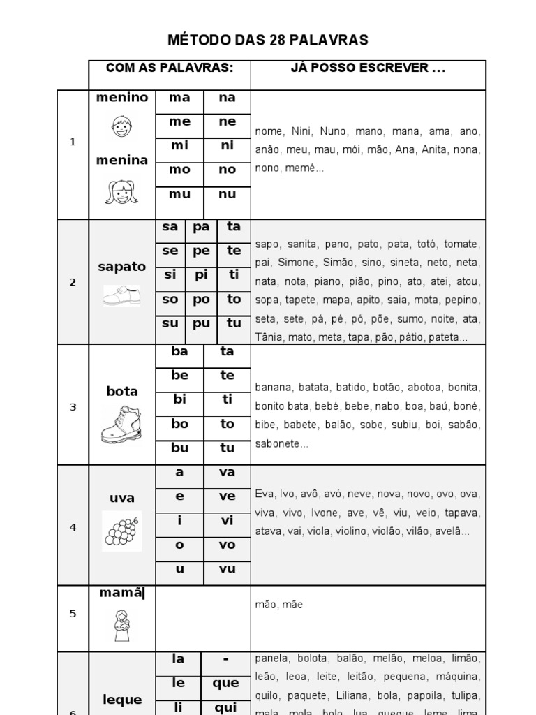 so po to sopa, tapete, mapa, apito, saia, mota, pepino,