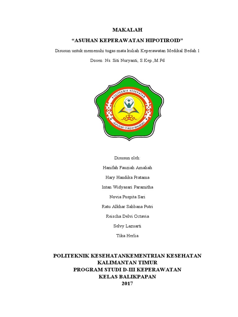 KEPERAWATAN HIPOTIROID” dapat selesai tepat pada waktunya sebagai salah