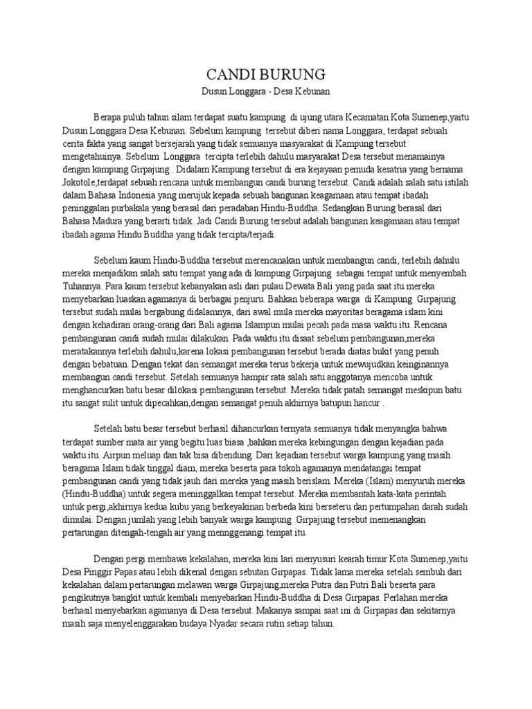 Bahasa Madura yang berarti tidak. Jadi Candi Burung tersebut adalah bangunan keagamaan atau tempat