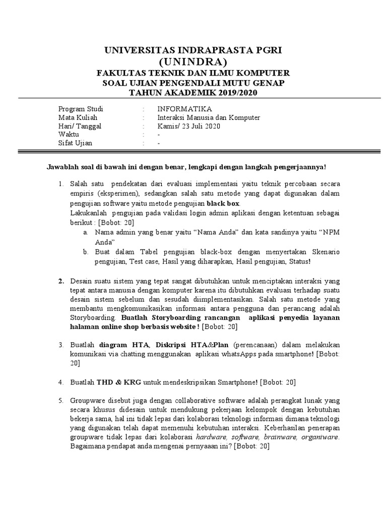 SOAL UJIAN PENGENDALI MUTU GENAP