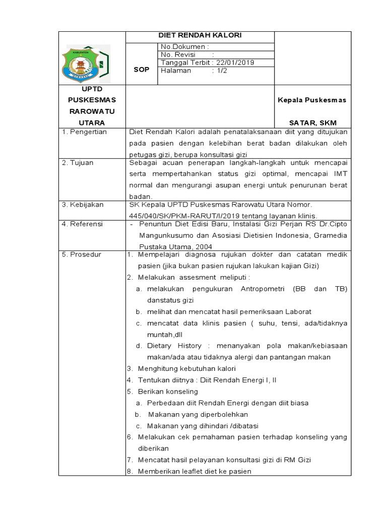 1. Pengertian Diet Rendah Kalori adalah penatalaksanaan diit yang ditujukan