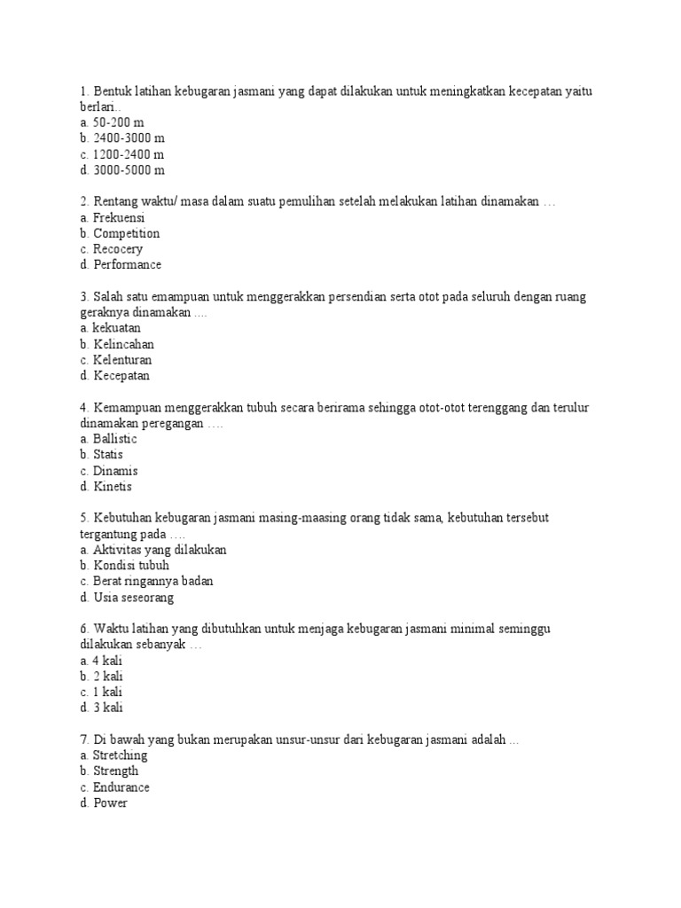 Buka Juga : 65 Soal Pilihan Ganda Bab Kebugaran Jasmani + Jawaban