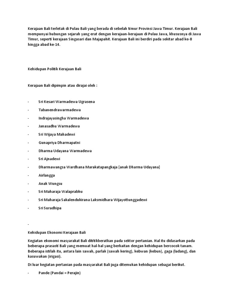 · Kehidupan Sosial-Budaya Kerajaan Bali
