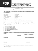 Yang bertanda tangan dibawah ini ketua RT. 31 RW. 08 Kelurahan Lebung gajah Kecamatan Sematang