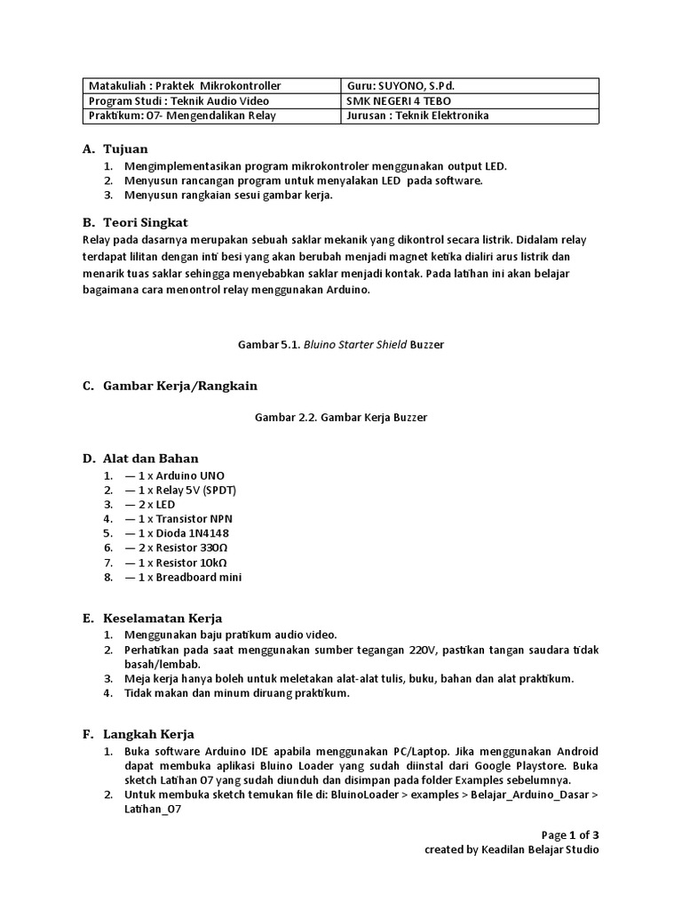 Praktikum: 07- Mengendalikan Relay Jurusan : Teknik Elektronika